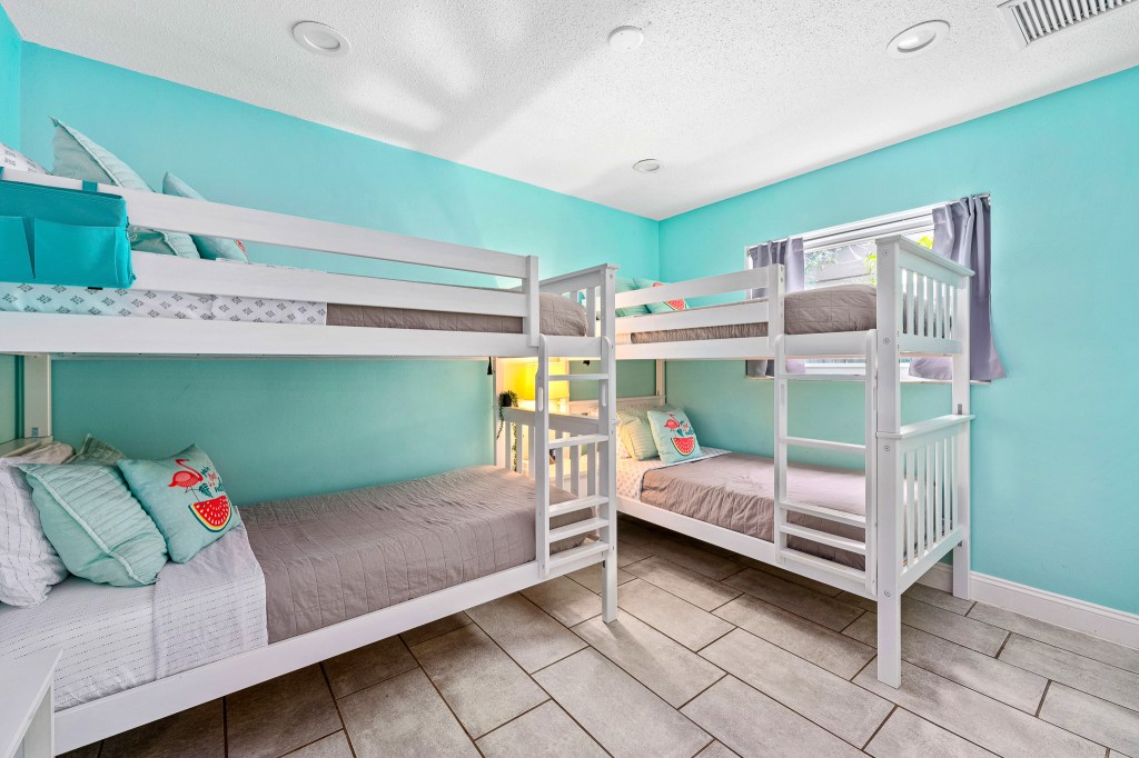 The Flamingo House was recently updated to a beautiful modern design with large windows and ample sunshine throughout the home. The tile floors help to keep the house cool. There is plenty of room for two families to share the space with two king bedrooms and a bunk room for the kids. Each room has its own Samsung Smart TV and there is a sound bar in the living room. We recently installed a bonus TV on the brand new outdoor bar area.